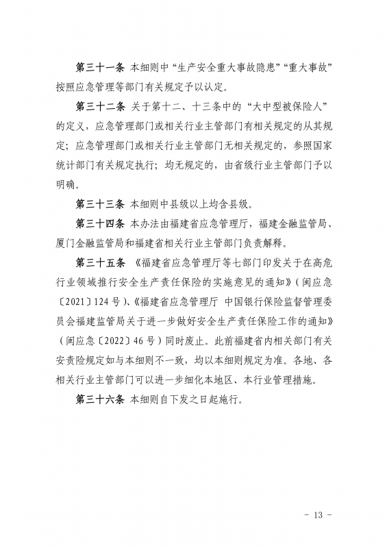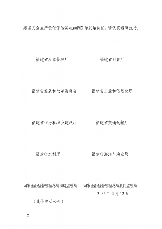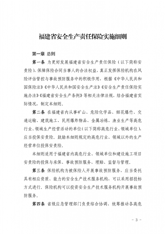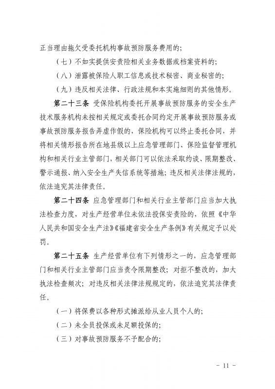 福建省应急管理厅等十部门 关于印发《福建省安全生产责任 保险实施细则》的通知